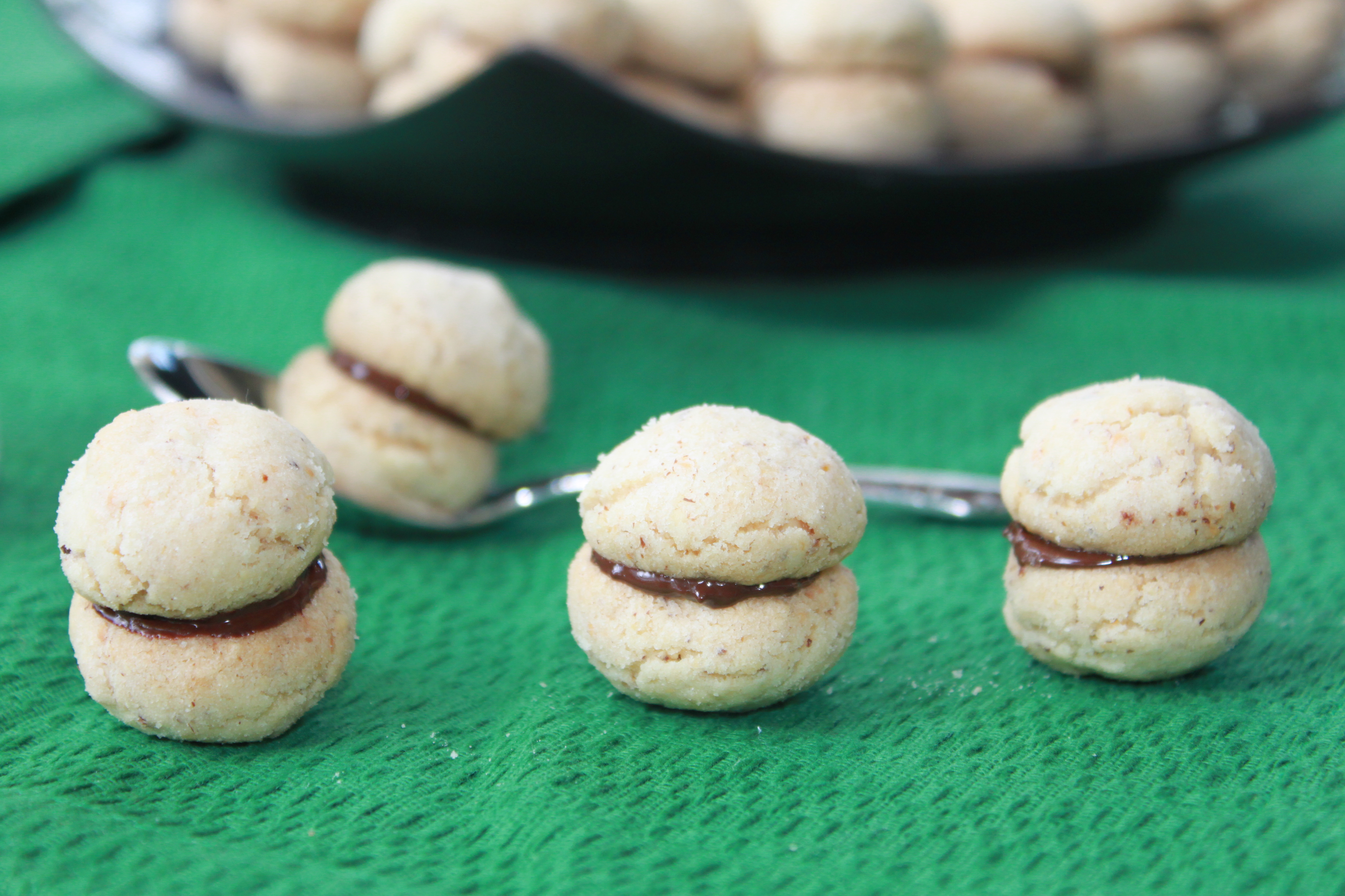 I found these cookies to be crunchy and sweet and of course nutty. As you bite into them you find how delicate they are, how they fall apart in your mouth, and you crunch on the tiny bits of hazelnut and the creamy chocolate filling takes over your taste buds. At first you may wonder why they are called “lady’s kisses”, but once you try them you’ll understand. It’s the combination of their tiny size, their delicate texture, and the sweet notes is the reason behind the adorable name. I recommend you enjoy these cookies with a cup of hot coffee, but I also image they would be just as dreamy with a glass of milk before bed.