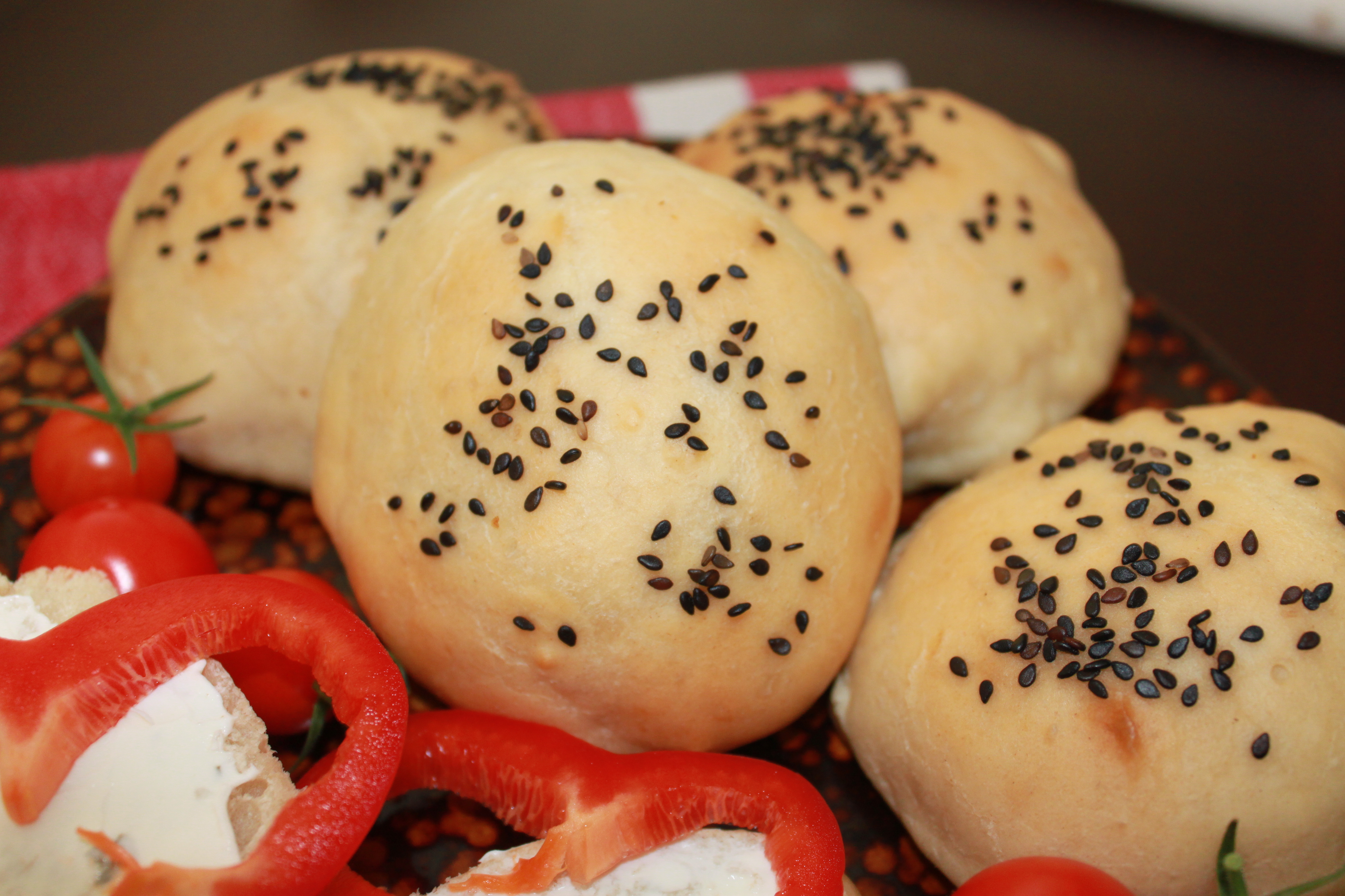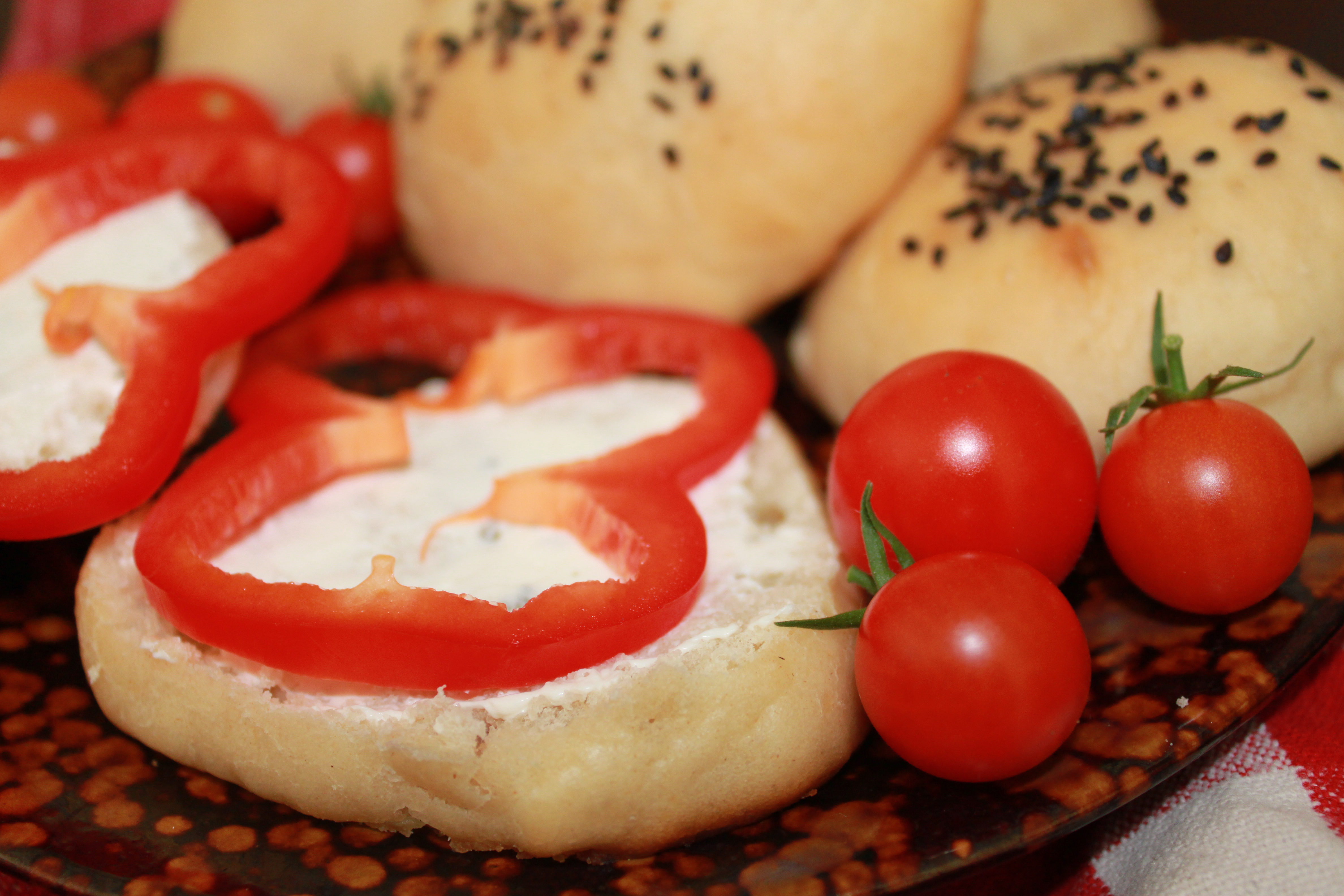 These buttermilk rolls are not just for dinner. They make a delicious breakfast too. Spread a thick layer of cream cheese add some veggies, like a crisp red bell pepper and baby tomatoes, and it makes a simple and satisfying breakfast. You will find yourself enjoying every minute, every bite, of this breakfast because there is just no better way relax and take in the day ahead. If you are imagining Julia Roberts in Eat Pray Love lounging on the floor, eating a beautiful plate of asparagus and eggs, that is exactly where I wanted to take you. On quiet mornings when you feel like indulging yourself I recommend you toast a sweet buttermilk roll and I dare you not to feel better.