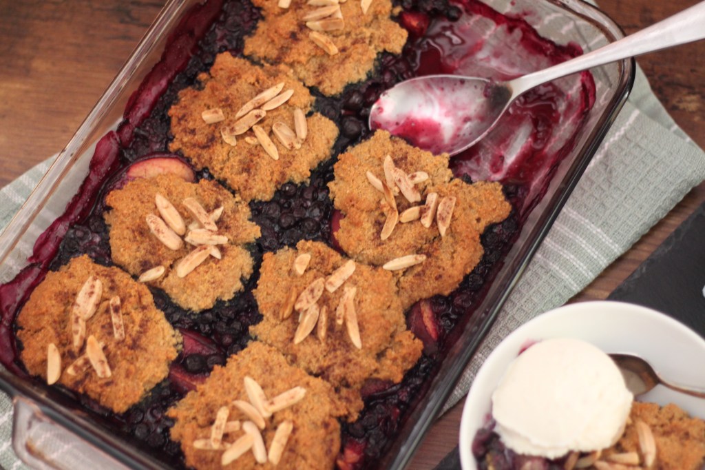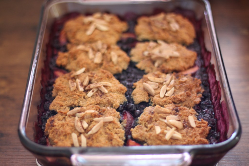 In the summertime, I love the combination of blueberry and peach. It might be my favorite fruit combination of all time. And what’s a better way to showcase the sweet and juicy fruit than in a cobbler? I’ve made cobbler countless of times but this is the first time I tried making it healthier. Less sugar, less butter and gluten-free. Can you even make delicious biscuits without all that? Yes you can! And how scrumptious they turned out.